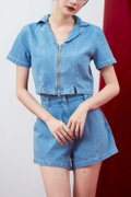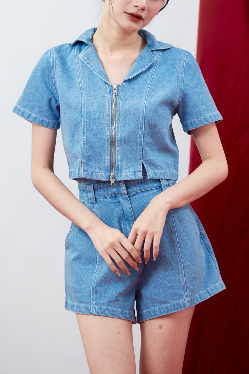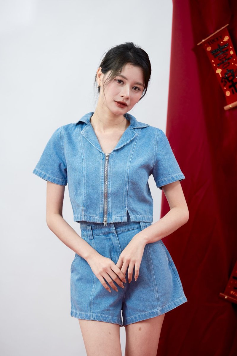 Helena Denim Top is a modern denim essential with subtle design details for a relaxed yet structured look. Made of medium weight textured denim, non-stretch, it offers a clean silhouette with durability. Featuring a double sided zip in centre front and two slits in front hem, it adds edge and versatility to the design. The cropped length is worn slightly loose for an effortless fit, while the light blue acid washed effect gives a fresh, casual finish.
