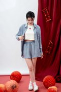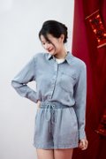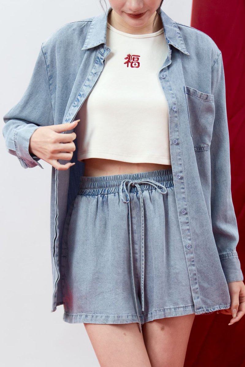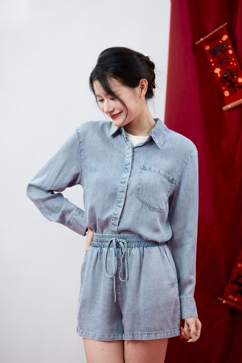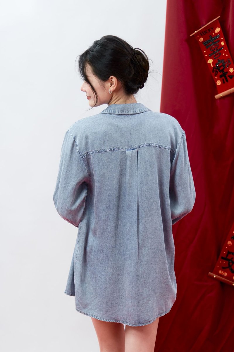 The Melanthis Soft Denim Shirt offers a relaxed and contemporary take on classic denim styling. Made of soft denim fabric with acid wash effect, it delivers a casual yet refined finish. Designed with an oversized fit, the silhouette provides effortless comfort and versatility. Functional details include a button up closure in front with cover placket for a clean front appearance, one patch pocket in wearer left side for utility, and button in cuffs with slit for ease of movement and adjustable wear.