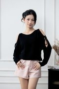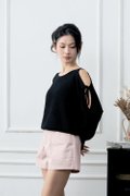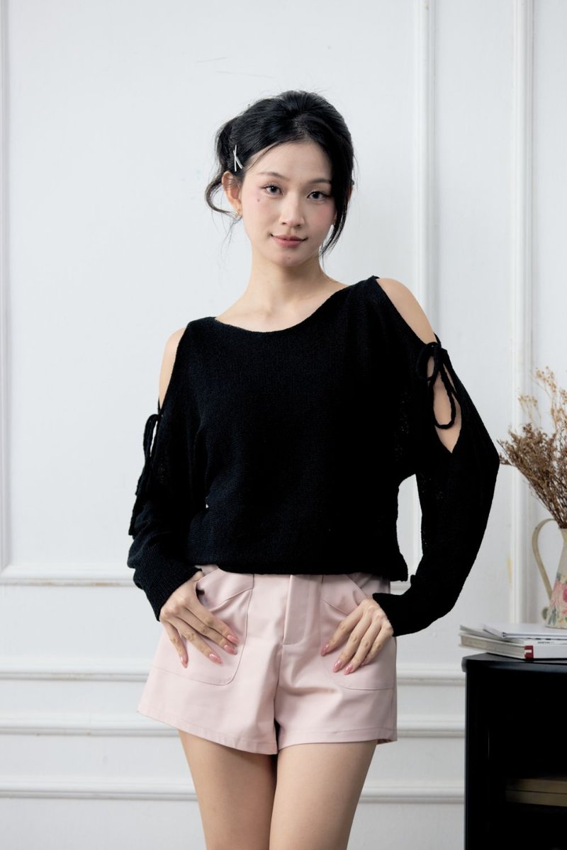 The Kelynne Cold Shoulder Knit Top brings effortless softness with a subtle statement twist. Made from a loosely woven knit, it drapes with a relaxed, airy texture that feels light on the skin. The cold-shoulder peephole detail—finished with a delicate tie—adds a playful yet refined touch to the silhouette. Slightly sheer and naturally oversized, it layers beautifully over inner pieces and creates an easy, flowy look. The bat sleeves add volume and movement, while the mild stretch keeps it comfortable for all-day wear. A versatile knit that pairs perfectly with denim, shorts, or tailored bottoms for a chic, relaxed outfit.