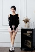 Model A is HEIGHT 168CM, PTP 15.5”, WAIST 12.5”, HIPS 17.5”, wearing size S.