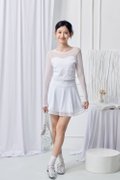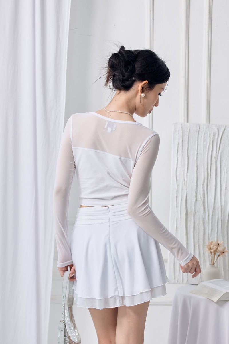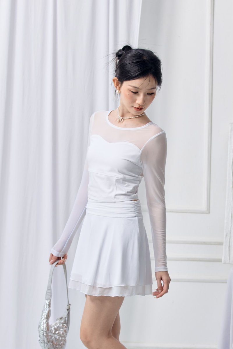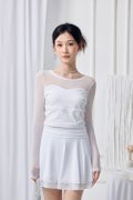 • Sleeve and upper piecing : Made of polyester blend mesh fabric, semi-sheer