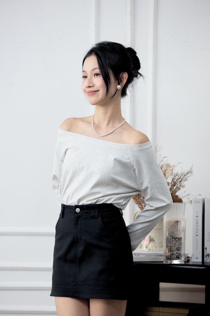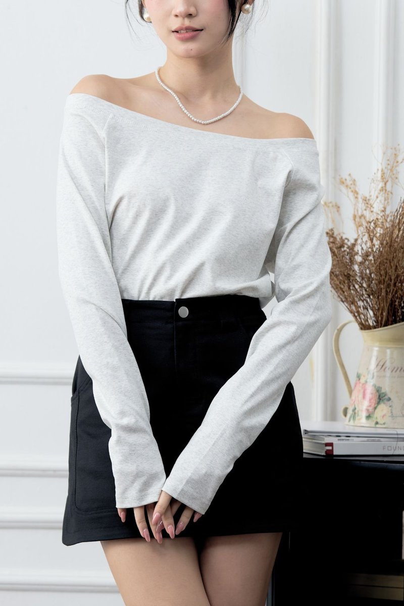 [RESTOCK] Evadne Off Shoulder Long Sleeves Top Grey