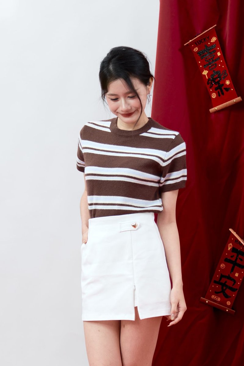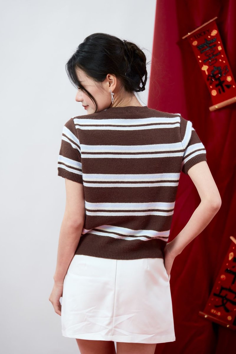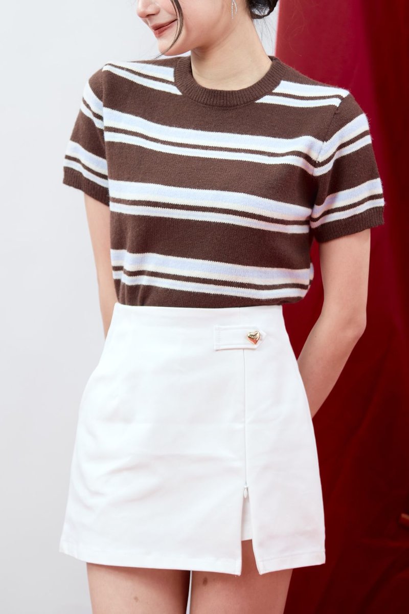The Virelle Contrast Stripe Knit Top is a modern knit essential, crafted from soft knit material for comfortable everyday wear. Elevated with contrast stripes in varying widths, it adds visual interest and a subtle statement to a classic silhouette. Finished with ribbed detailing at the collar, sleeve hems, and hem, the top sits snugly while maintaining a relaxed feel. Designed to be worn slightly loose with a slightly cropped length, it offers an effortless, balanced look that pairs perfectly with high-waisted bottoms.