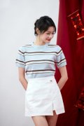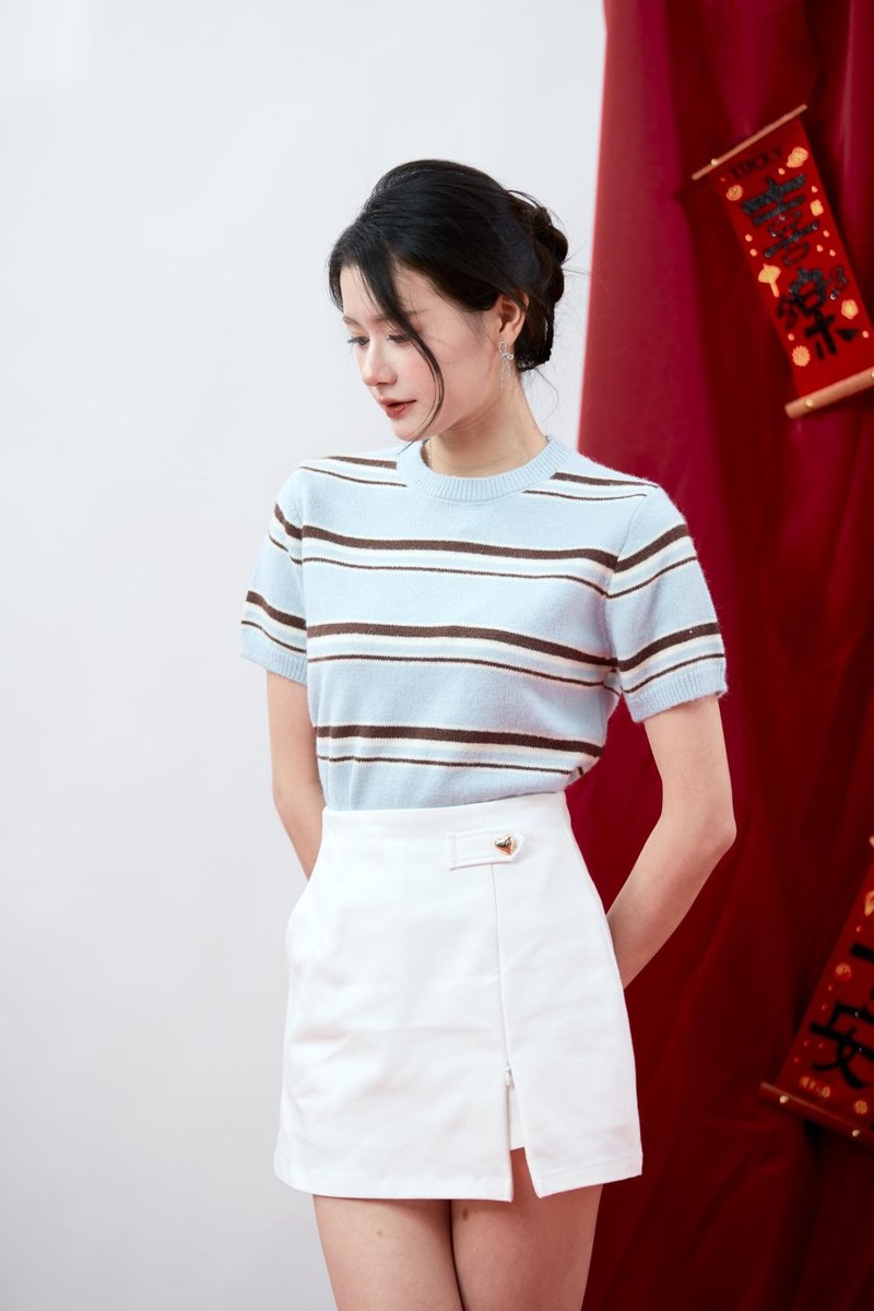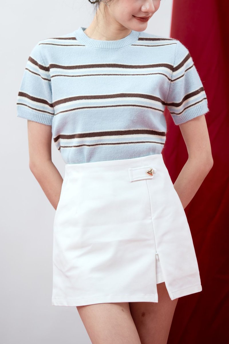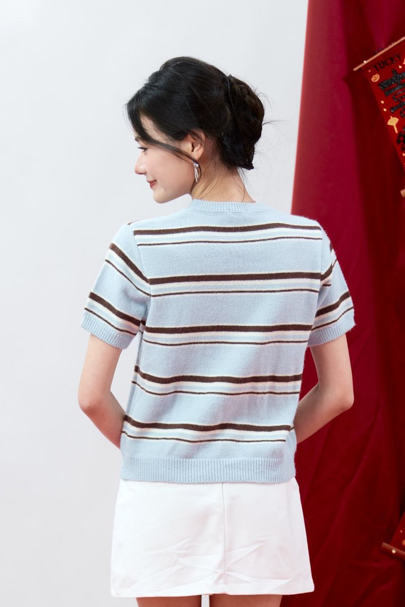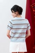Virelle Contrast Stripe Knit Top Sky