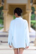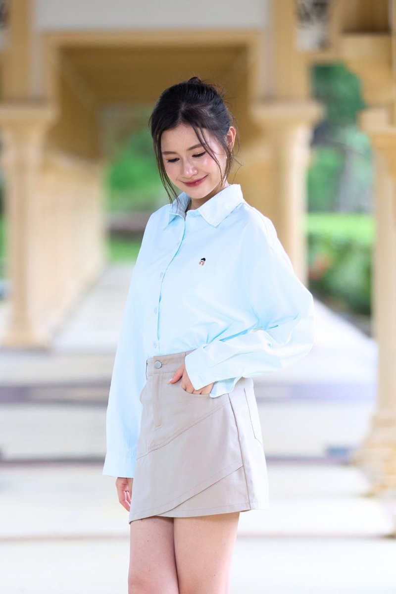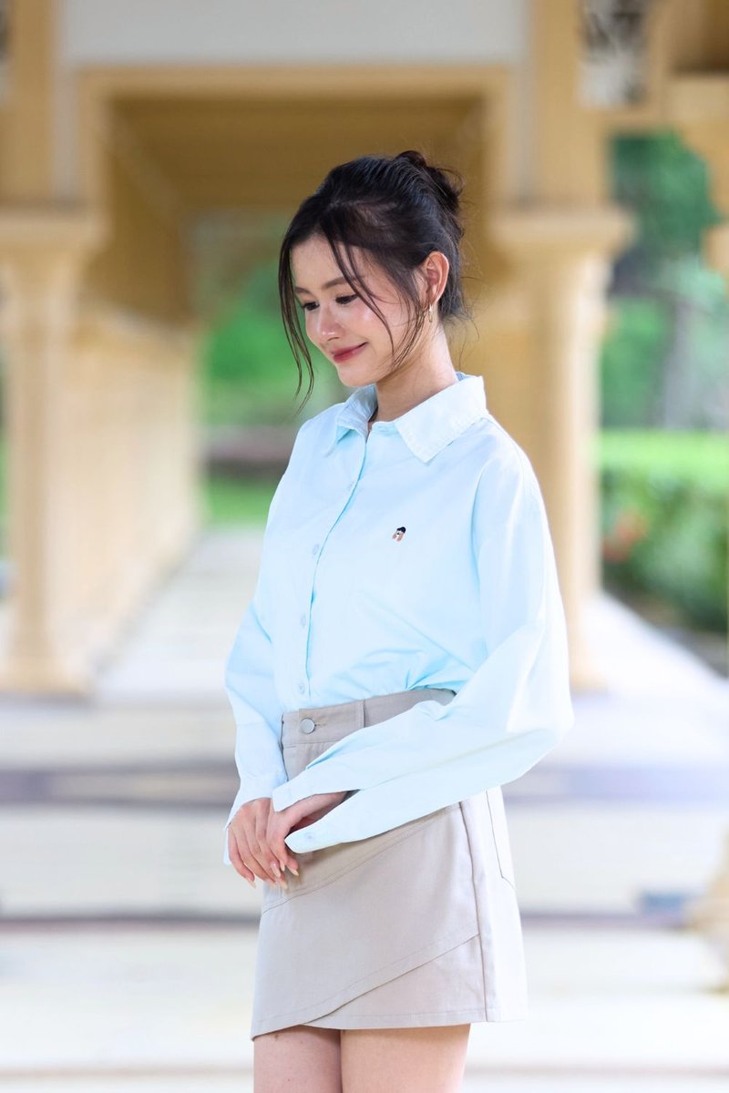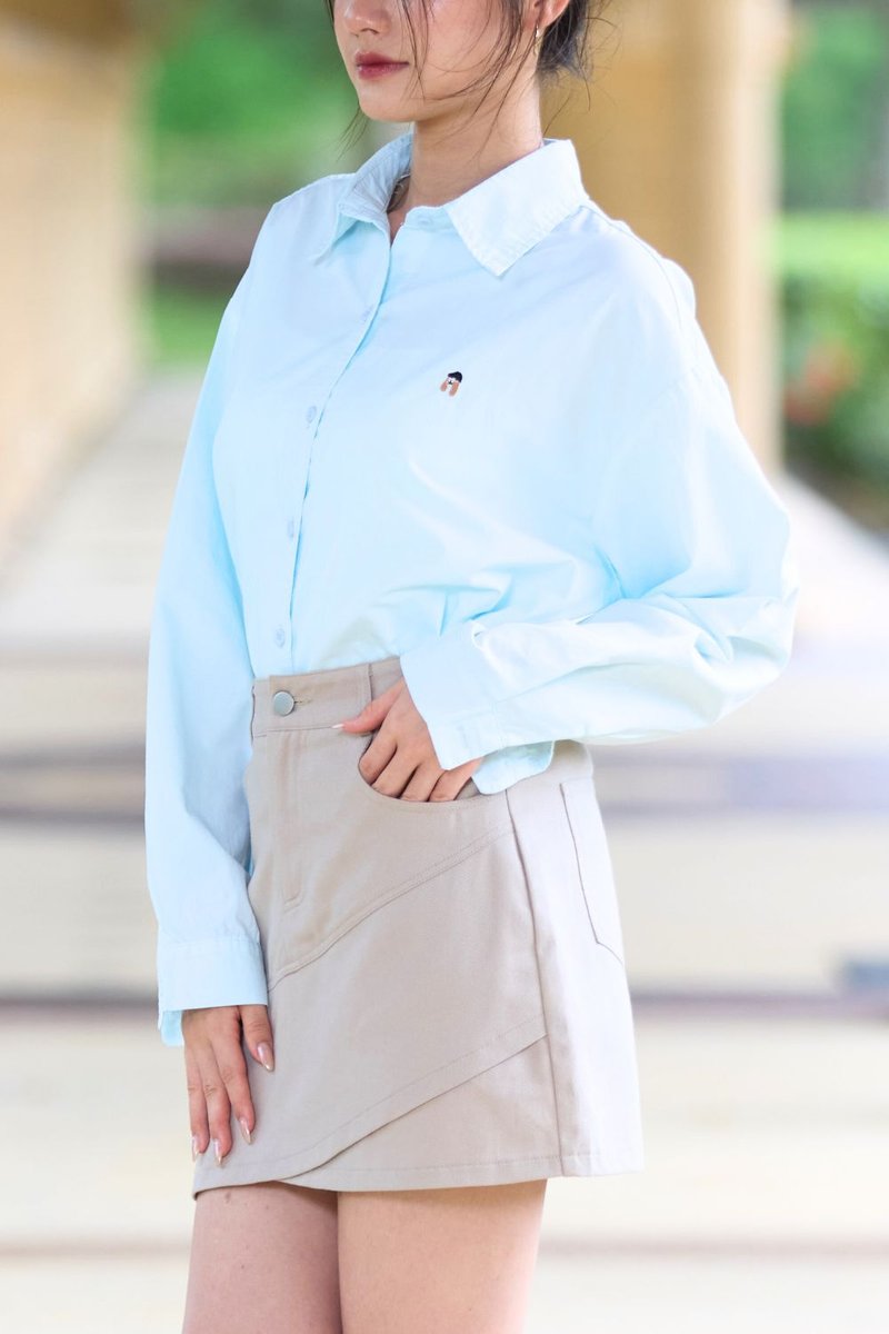 The Dravina Long Sleeve Pocket Shirt brings a playful twist to a classic silhouette. Made of cotton blend poplin fabric, it features an oversized fit with a cropped cut for a modern, laid-back vibe. The collared neckline and front button opening keep it polished, while the sleeve cuffs with button add structure. A small cute doggie embroidery gives it a charming detail, making it versatile to wear on its own or styled as an outer layer.