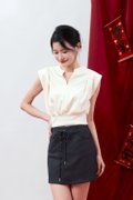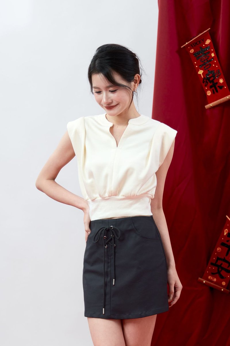 The Aralyn Cap Sleeve Pleated Shoulder Knit Top is where elegance meets everyday ease. Made of jersey knit material with stretch, it offers a soft and flexible fit that flatters every shape. Designed with sophisticated pleated shoulders and finished with a cap sleeve design, it adds structure and a refined touch to your outfit. The mandarin collar with a V-slit provides both style and neck comfort, while subtle gathers at the waistline create gentle volume for a balanced silhouette. Completed with a snug ribbed hem to accentuate the waist and figure, this cropped, slightly fitted top is perfect for both work and casual occasions.