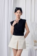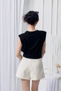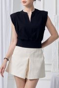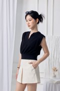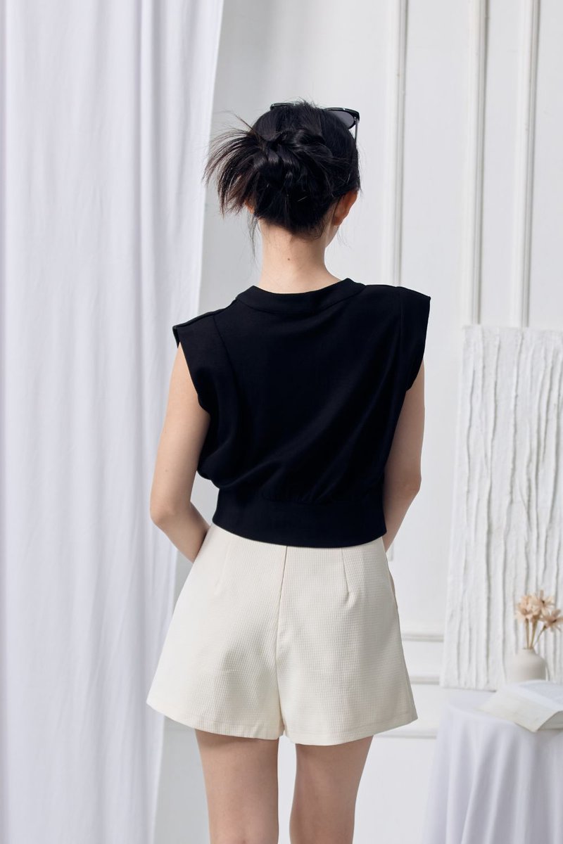 Aralyn Cap Sleeve Pleated Shoulder Knit Top Black