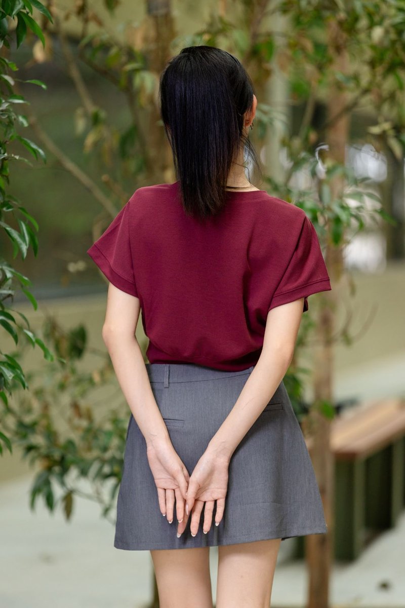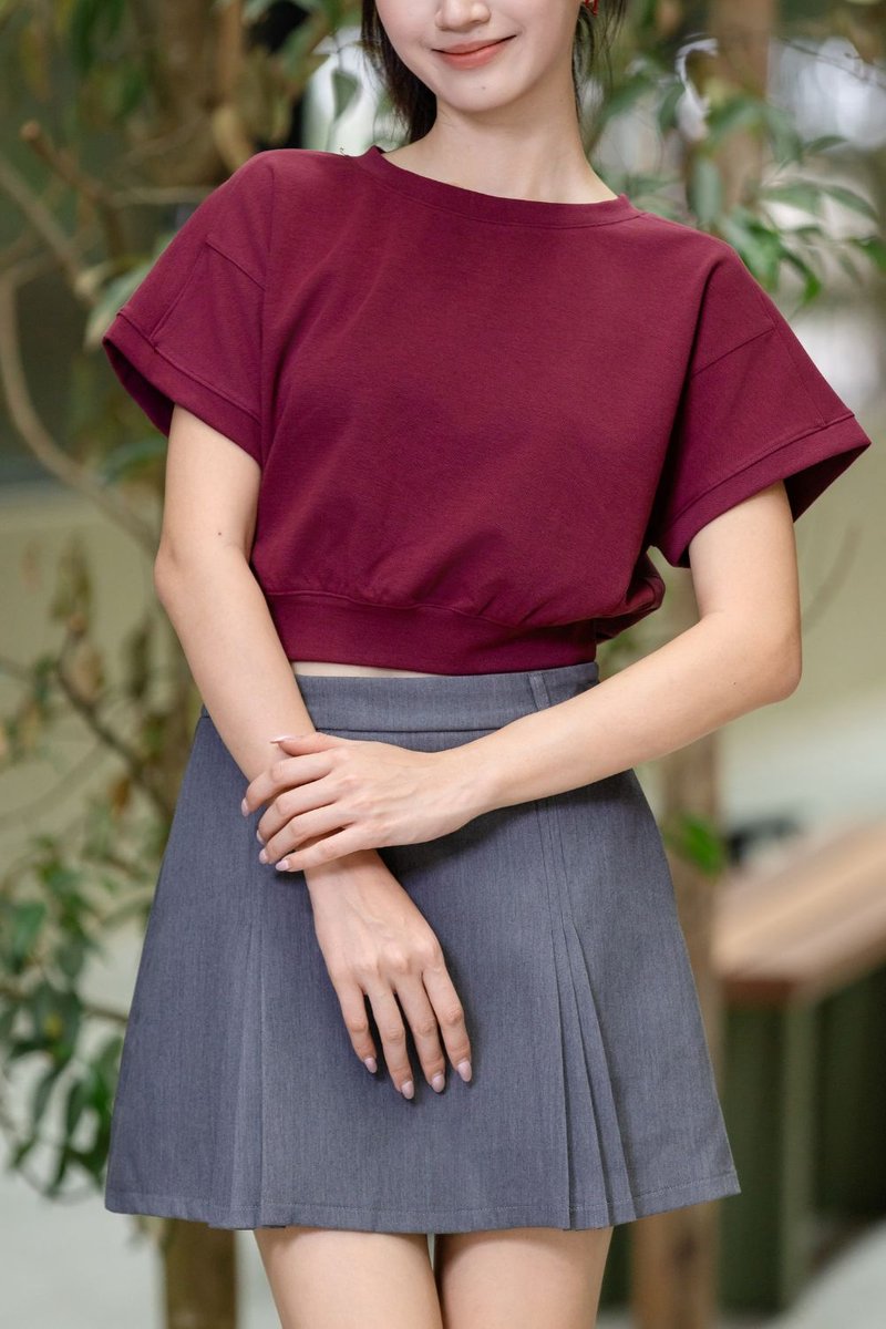 Effortlessly refined, the Auralie Batwing Sleeve Top brings together comfort and subtle structure. Crafted from a textured cotton knit with stretch, it features a classic round neckline and bat sleeves that drape beautifully for a relaxed yet elevated silhouette. Dart lines run from shoulder to hem, adding visual interest and shaping, while the thick waistband cinches gently at the waist to create a flattering, tucked-in effect. Slightly loose and soft to the touch, this piece is ideal for chic everyday wear with a modern edge.
