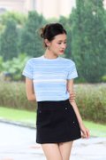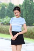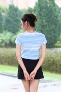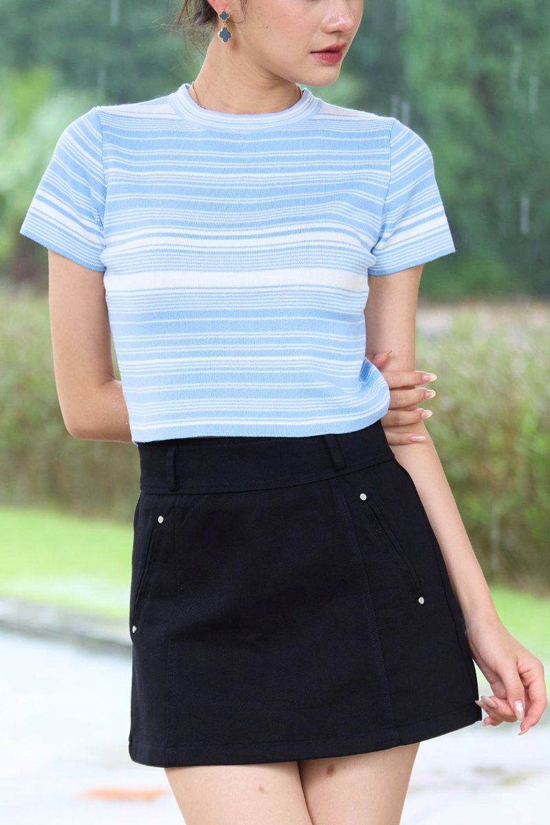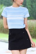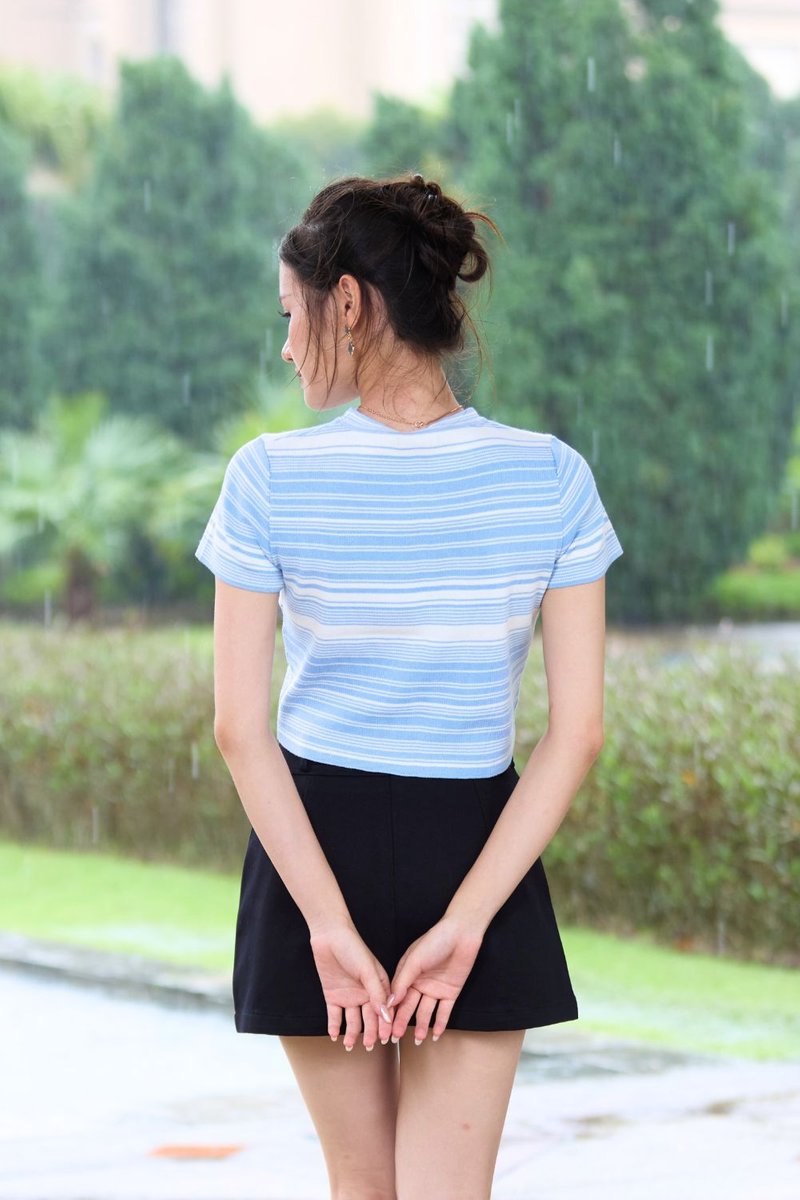 Aurevia Variegated Stripes Short Sleeve Top Sky