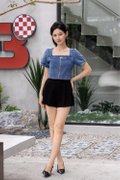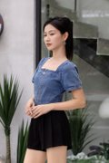 Mila Denim Cropped Zip Top is a contemporary statement piece crafted from mid-weight cotton washed denim for a structured yet stylish look. Designed with a flattering square neckline and puffed short sleeves, it adds a feminine touch to classic denim. The cropped length creates a modern silhouette, while the front zip closure with a decorative zip puller adds a subtle design detail. Unlined with a non-sheer, non-stretch finish, this top maintains its shape while offering a clean and polished appearance.