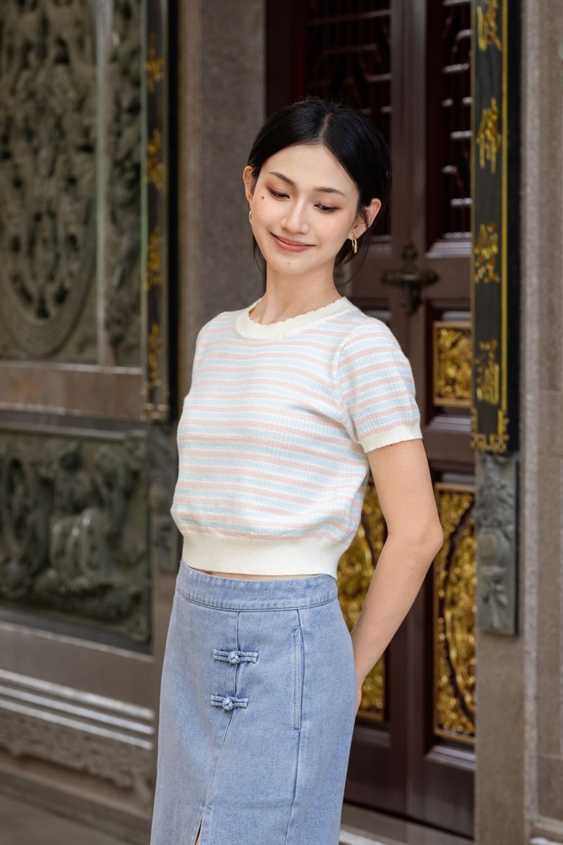 The Sylpha Contrast Mix Thread Knit Top is a modern essential crafted from horizontal textured weave knit material, designed to add subtle texture and visual interest. Each color is specifically picked to create a refined contrast, elevating the overall look of this piece. A refreshed version of our bestselling Mina Knit Top, its thickness has been carefully adjusted to suit Singapore weather for breathable, comfortable wear. Finished with a cropped length and designed to be very stretchable, it offers a flattering fit that moves effortlessly with the body.