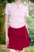 Gracielle Ruched Drawstring Knit Cheongsam Top Blush