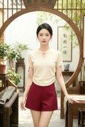Gracielle Ruched Drawstring Knit Cheongsam Top is a modern cheongsam-inspired knit top designed to balance elegance and comfort effortlessly. Made of specifically knit material with stretch, this piece offers a soft, flexible fit that moves with the body while maintaining a refined silhouette. The thickness is thoughtfully adjusted to suit for Singapore weather, making it breathable and comfortable for all-day wear. Featuring a mandarin collar with Chinese knot, it brings a subtle oriental touch to a contemporary knit design. The length can be adjusted with the ruched drawstring design at both sides, allowing for versatile styling and personalized fit. Worn slightly fitted but comfortable because of high stretch, it flatters the figure without feeling restrictive.