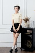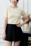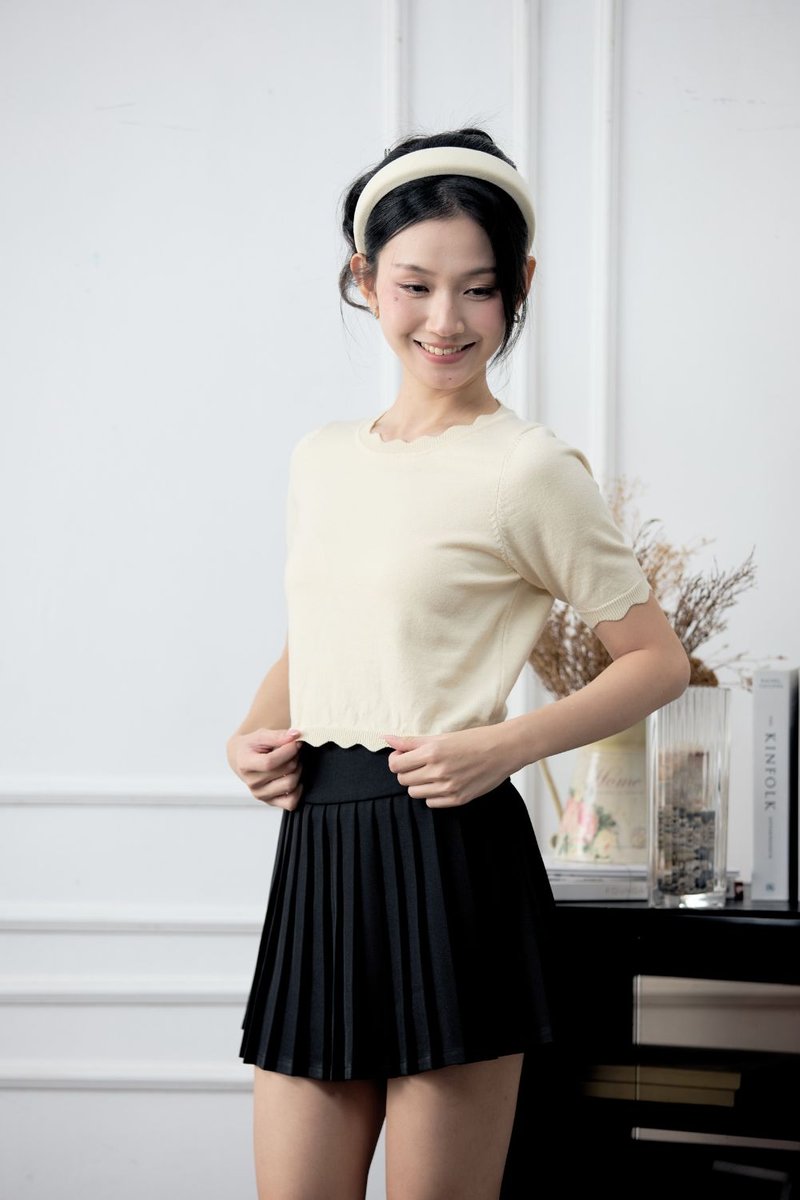 - Basic elevated knit top with scallop ribbing design on collar, sleeve and hem