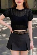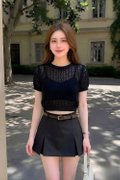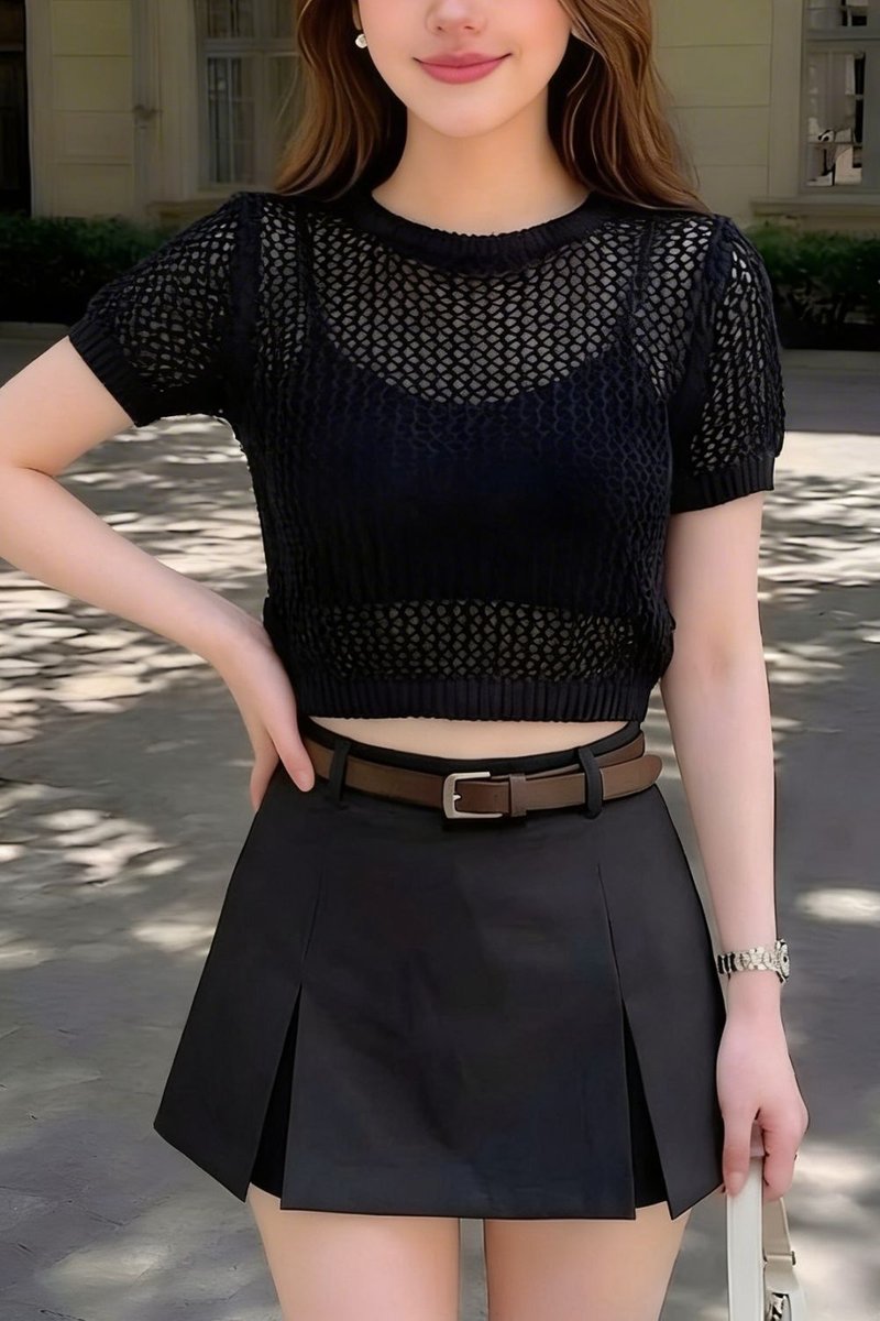 Lunara Crochet Knit Top is a lightweight layering essential designed with an airy open-knit construction for a relaxed and effortless look. Crafted in a breathable crochet knit, it features a slightly cropped length and a boxy silhouette for easy styling. The short sleeves and loose fit offer comfort and movement, making it perfect to layer over a bralette, tank, or bikini. Worn relaxed, it adds a soft, textured touch to any outfit with a laid-back yet feminine feel.