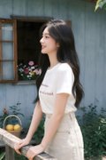 Lyraen Top is a casual everyday essential designed for effortless comfort and styling. Crafted from cotton-blend t-shirt fabric, it offers a soft feel with slight stretch for ease of movement. The round neckline and short sleeves create a classic silhouette, while the cropped length and slightly relaxed fit give it a modern, laid-back vibe. Finished with wording prints, this tee adds a playful statement to any outfit.