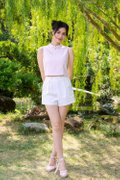 Model Y is HEIGHT 162CM, PTP 16.4”, WAIST 12.4”, HIPS 17”, wearing size S.