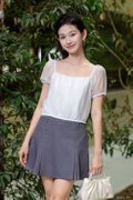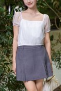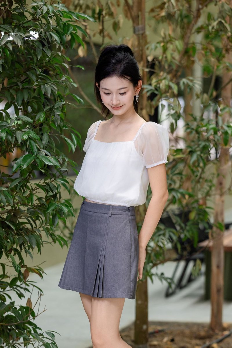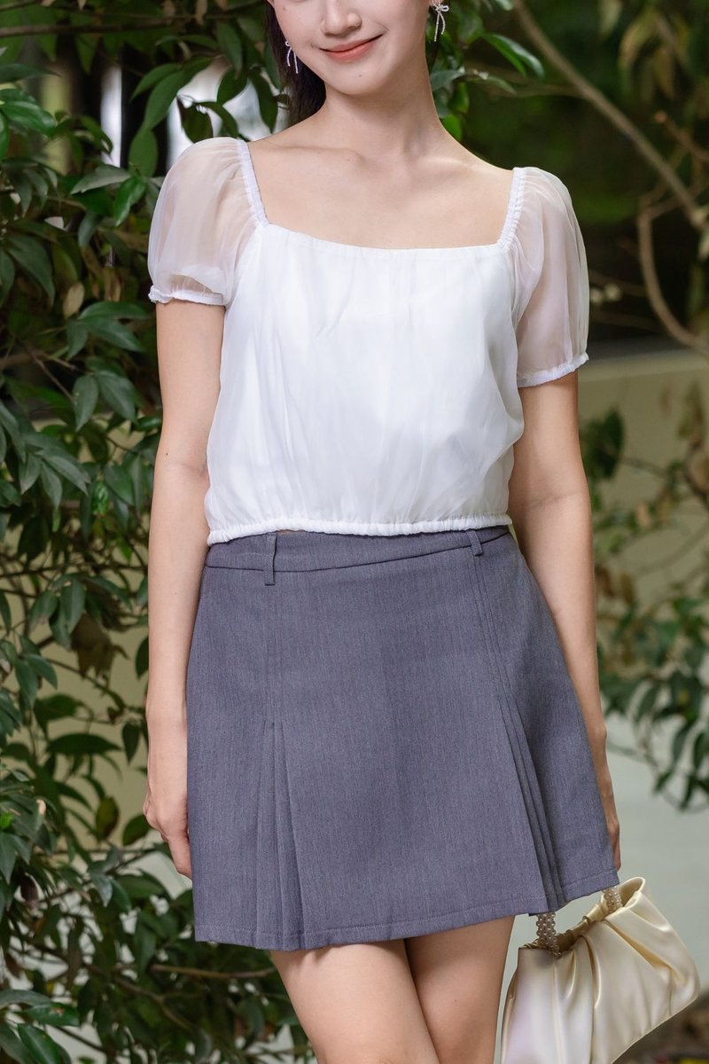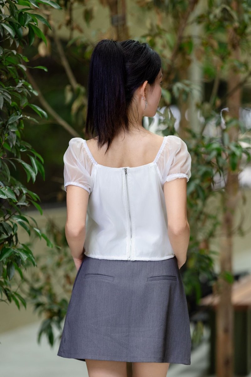 Serena Organza Cropped Top is a feminine statement piece that blends softness with structure. Crafted with a polyester blend soft organza outer layer and delicate mesh puff sleeves, it is fully lined with stretchy jersey t-shirt fabric for a comfortable, non-sheer wear with slight stretch. Designed with a flattering square neckline, the sheer mesh sleeves with elasticated shoulder bands add volume and an airy touch, while maintaining ease of movement. The cropped length is complemented with shirring details and an elasticated waist hem, offering a comfortable and flattering regular fit. Finished with an open-end back zip, this top is both elegant and easy to wear.