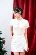 Model P is HEIGHT 165CM, PTP 14.4”, WAIST 12.8”, HIPS 17.6”, wearing size S.