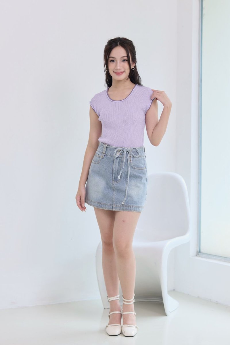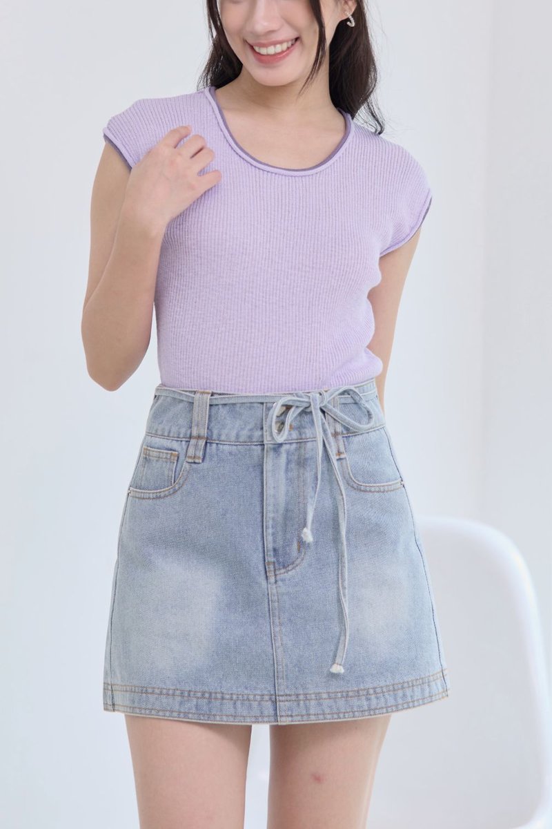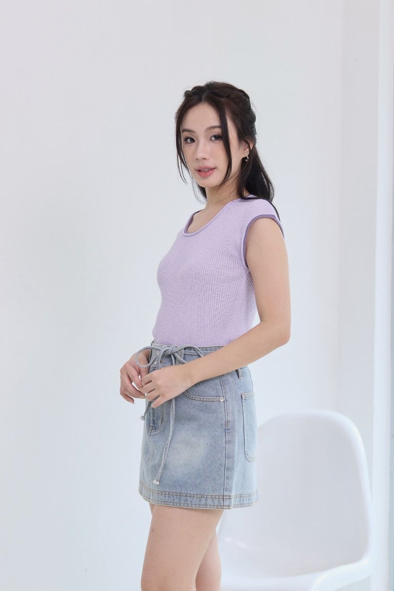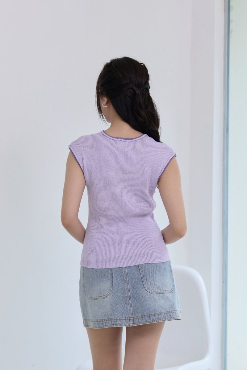 Syrene Contrast Knit Top Lilac