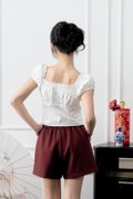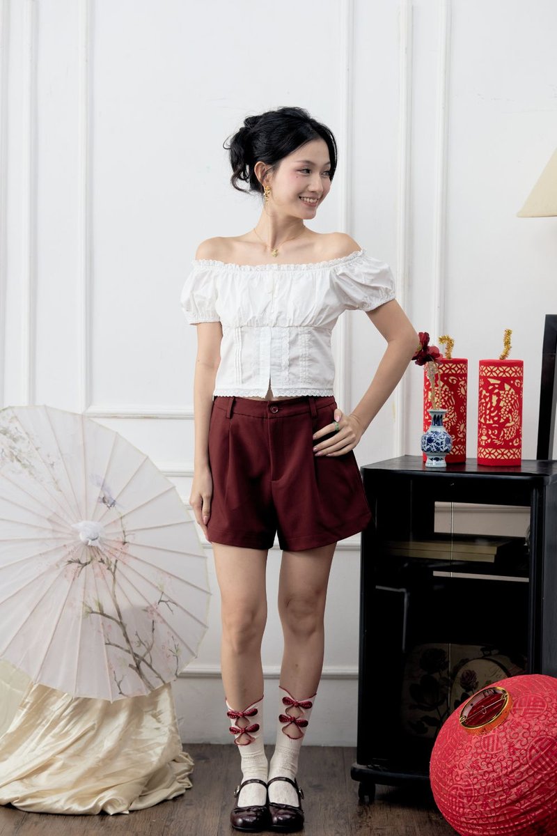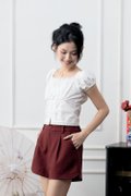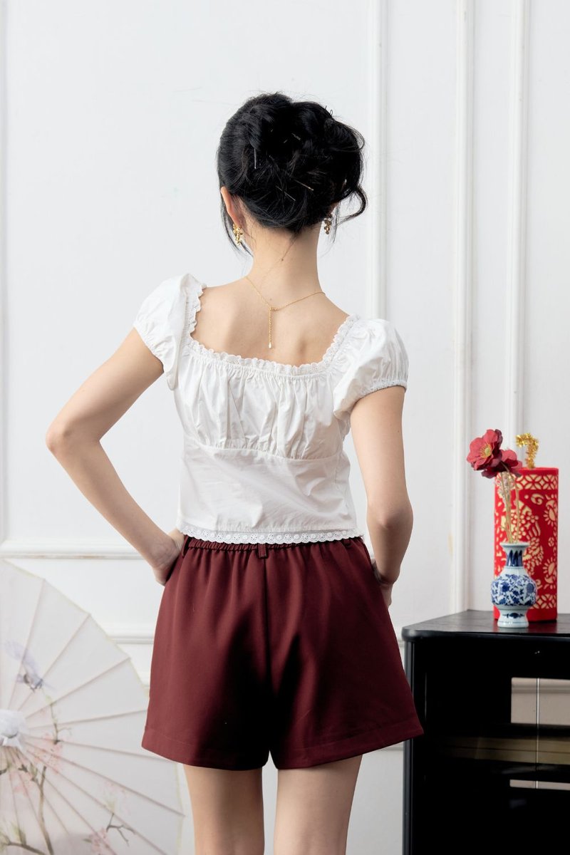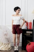 Model P is HEIGHT 165CM, PTP 14.4”, WAIST 12.8”, HIPS 17.6”, wearing size S.