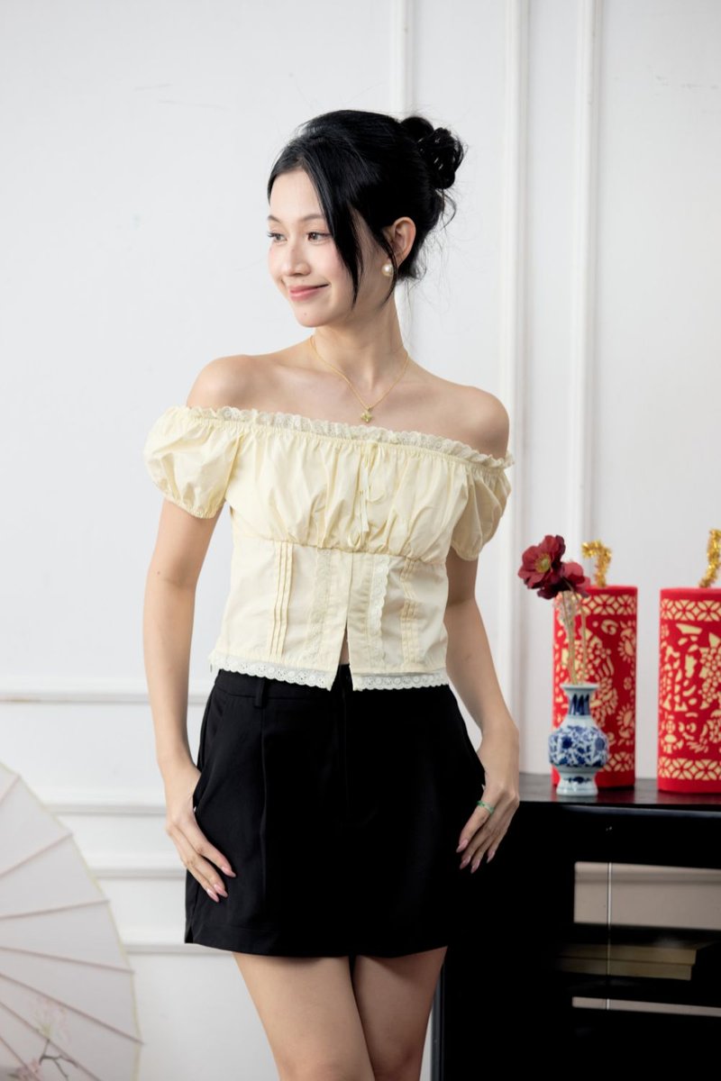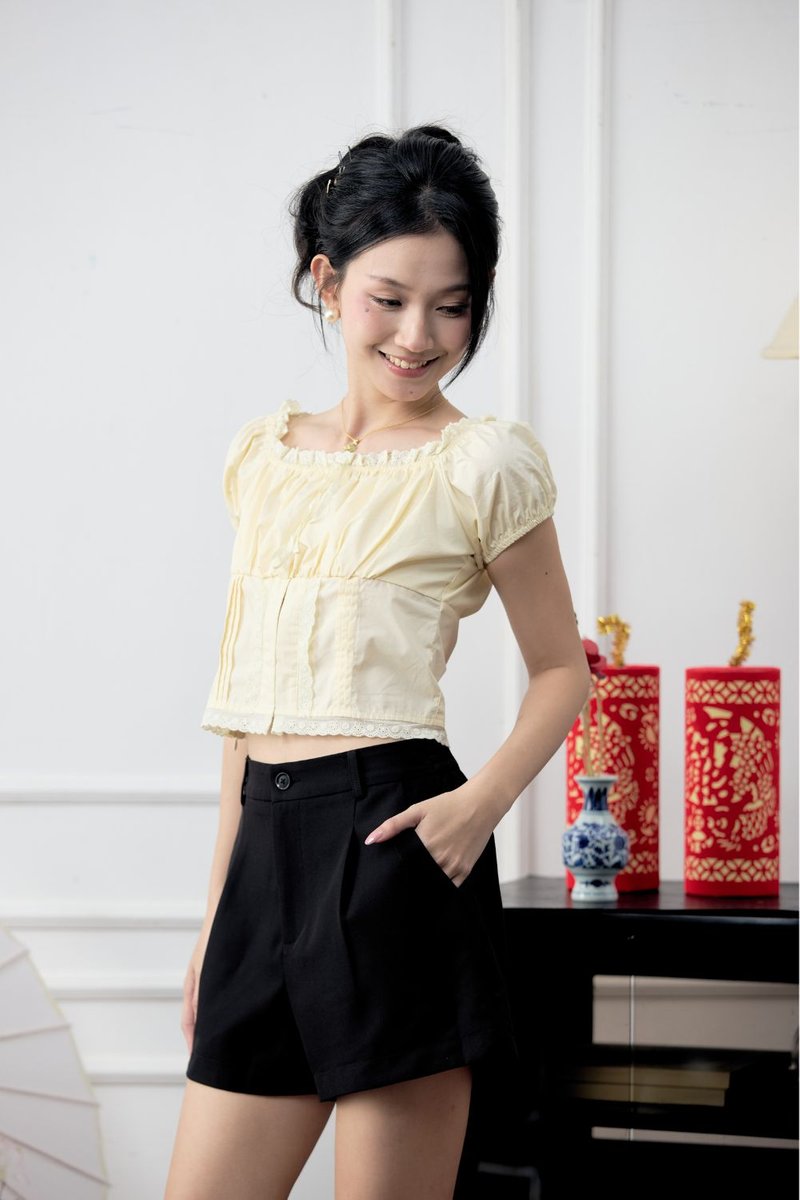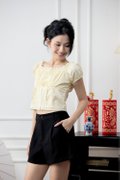 Model P is HEIGHT 165CM, PTP 14.4”, WAIST 12.8”, HIPS 17.6”, wearing size S.