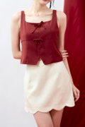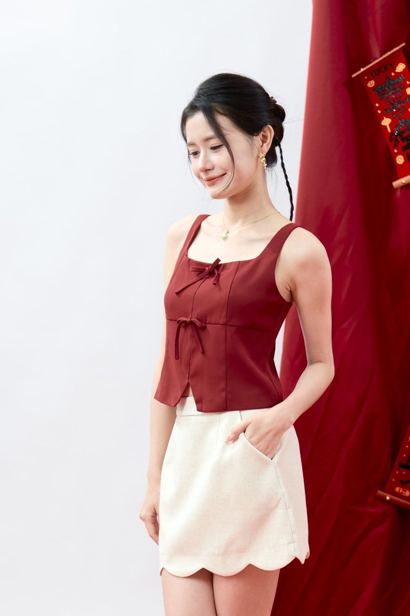 Althea Square-Neck Bow Detail Crepe Top Scarlet