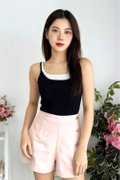 The Arvys Sleeveless Top is a clean, easy essential with a subtle pop of contrast. Made from a soft cotton-blend tee fabric, it stays non-sheer, stretchy, and comfortable for all-day wear. Built-in padding provides light shaping and convenience, while the dual-color spaghetti straps and contrast front piecing add a sporty-chic touch. Finished with a slightly fitted silhouette, it’s a simple yet elevated piece perfect for everyday styling.