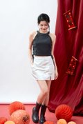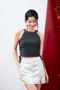 Model Y is HEIGHT 162CM, PTP 16.4”, WAIST 12.4”, HIPS 17”, wearing size S.