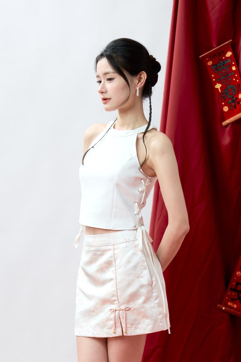 Model Y is HEIGHT 162CM, PTP 16.4”, WAIST 12.4”, HIPS 17”, wearing size S.