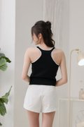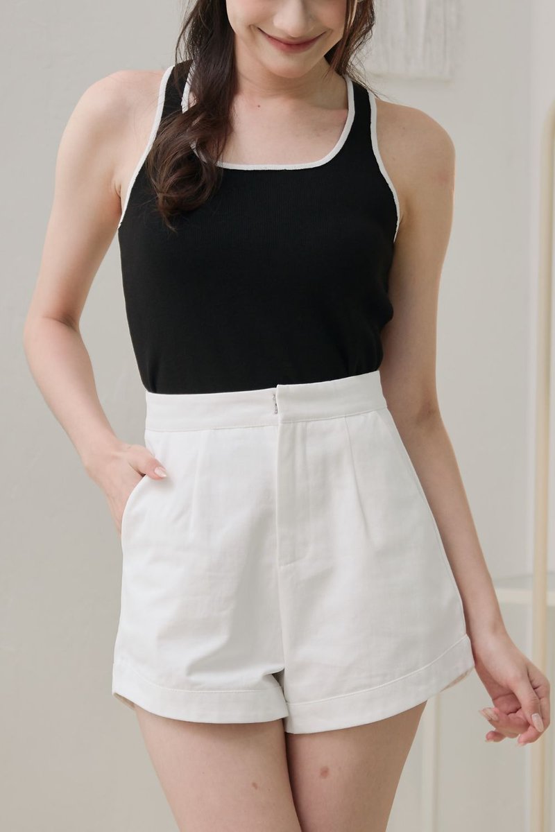 Effortlessly flattering with a sporty-chic twist — the Gracie Contrast Halter Neck Knit Top is designed to contour and complement. Made of soft stretchable knit, it features bold contrast trimming at the collar and armholes for a touch of structure. The thick halter strap creates a slimming visual, while the racer back detail adds an elevated edge. Slightly fitted and cropped to the perfect length, this is your go-to top for days when minimal effort meets maximum style.