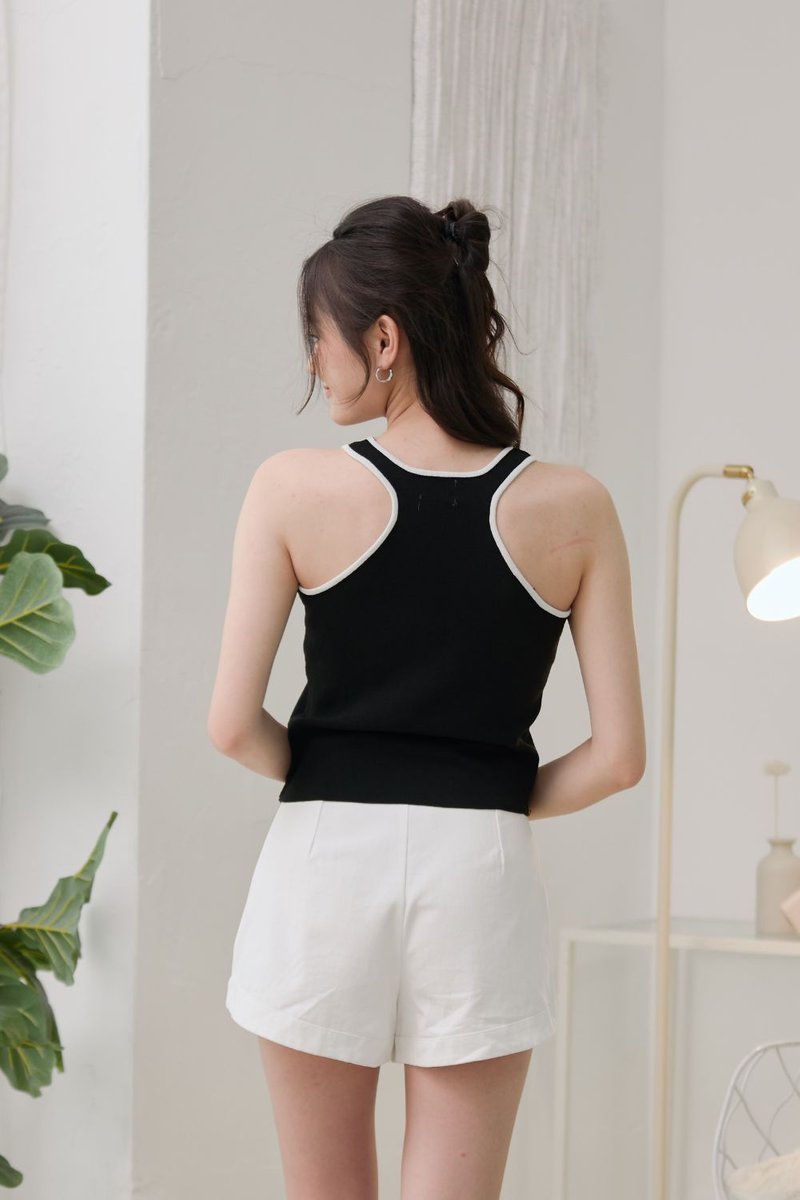 Gracie Contrast Halter Neck Knit Top Black
