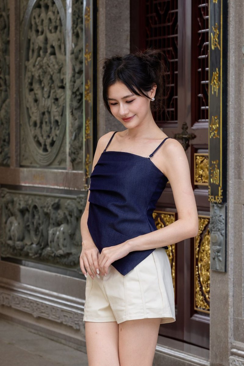 Kaelivra Asymmetric Strappy Top Dark Blue