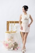 Model P is HEIGHT 165CM, PTP 14.4”, WAIST 12.8”, HIPS 17.6”, wearing size S.