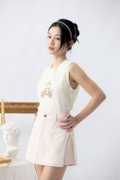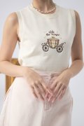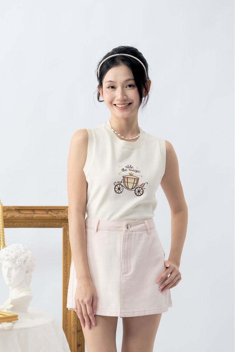 The Lumiya Carriage Knit Top is a charming knit essential, crafted from high-stretch, mid-thick knit material that offers comfort with a flattering fit. Designed to be worn slightly fitted, it features a slightly tuckable length that makes styling easy for both tucked-in and worn-out looks. The embroidered design at the centre front adds a delicate, playful accent, elevating this knit top with subtle detail. Versatile and effortless, it pairs beautifully with skirts, denim, or tailored bottoms for everyday wear.