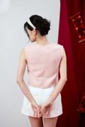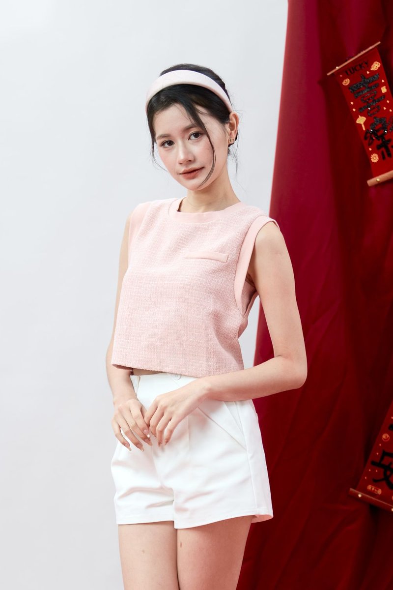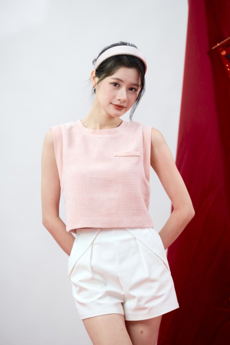 The Oriel Tweed Cap Sleeve Top is a polished wardrobe essential crafted from textured tweed fabric with jersey ribbing finishing for added comfort and a refined touch. Fully lined for a smooth, structured fit, this design features a cap sleeve silhouette with a windbreaker-style armhole to subtly cover arm fat while maintaining a clean shape. Finished with a fake welt pocket at the chest for understated detail, the top is completed with an invisible zip at the back for easy slip-on wear, making it a versatile piece for both work and elevated casual styling.