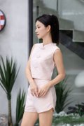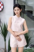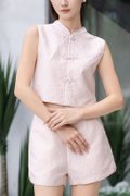 The Philomena Jacquard Cheongsam Top presents a classic cheongsam shape with exquisite traditional details. Made from a mid-weight, non-stretch jacquard fabric and fully lined, it features a slightly fitted silhouette for a refined look. The design is defined by elegant decorative Chinese knots at the front and crisp satin binding along the neckline and armholes. An open-end metal zip closure at the centre back ensures secure and effortless wear.
