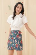 A floral skirt with a ruched detail and side slit to wear for your picnic dates.