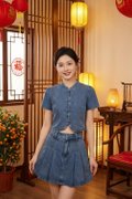 • A set with Denim Puff Sleeve Cheongsam Top