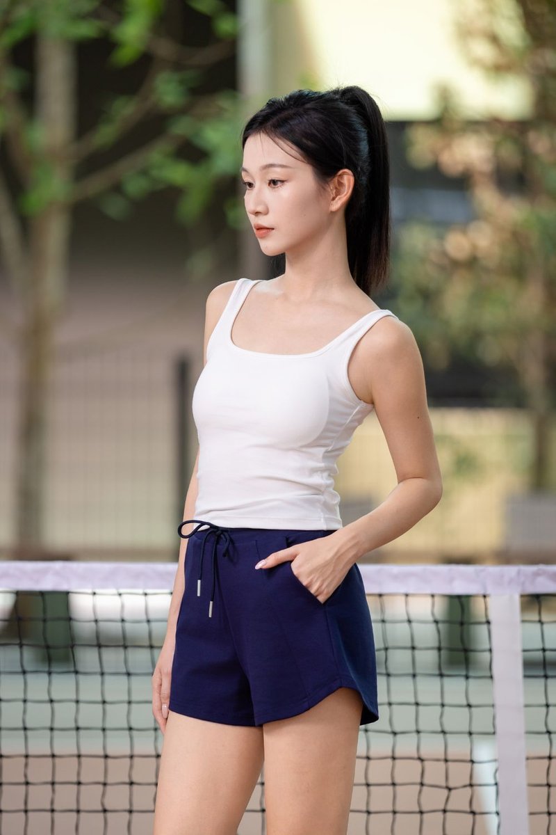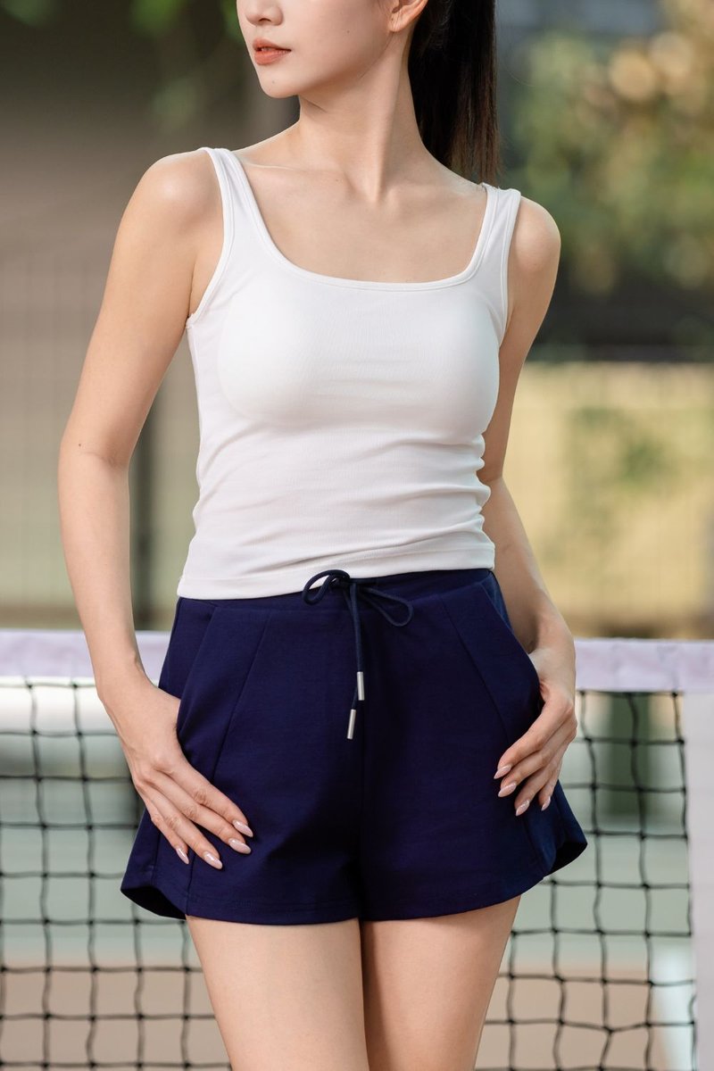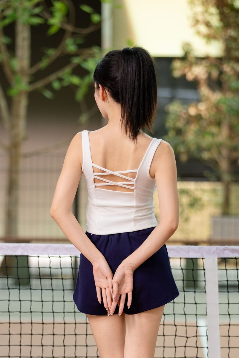 Alouette Padded Cross Back Tank Top is a supportive and versatile essential designed for both comfort and style. Made of stretchable cotton material, it offers flexibility and ease of movement. Lined with non-removable padding layer, it provides added support and convenience. Featuring thick strap and cross back design to elevate this tank top, it enhances both structure and visual interest. Worn fitted to flatter the silhouette, with normal length, can slightly tuck in for effortless styling.