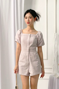 The Lennie Square Neck Puff Sleeve Cotton Twill Romper is a perfect mix of classic charm and playful femininity. Made of cotton twill material, it offers a structured yet breathable fit ideal for all-day wear. Featuring a square neckline with elastic puff sleeves, it frames the shoulders beautifully while adding a romantic touch. The back elastic and waist smock panel ensure a comfortable snug fit, enhancing your silhouette effortlessly. Detailed with custom Purpur’s metal buttons and a zip closure at the center front, this romper also includes two front patch pockets for a casual-chic vibe. The upper body is fully lined with soft knit material, while the slightly fitted top and A-line bottom create a flattering, balanced look.