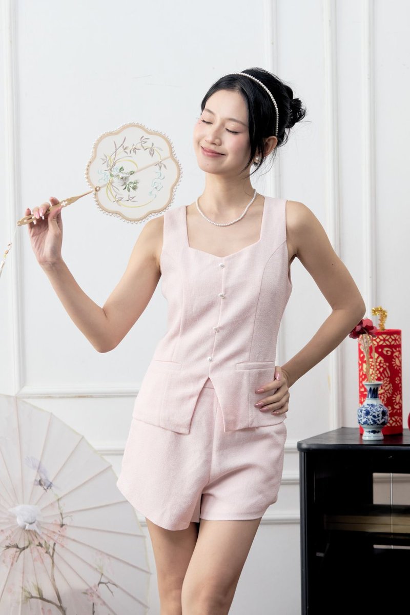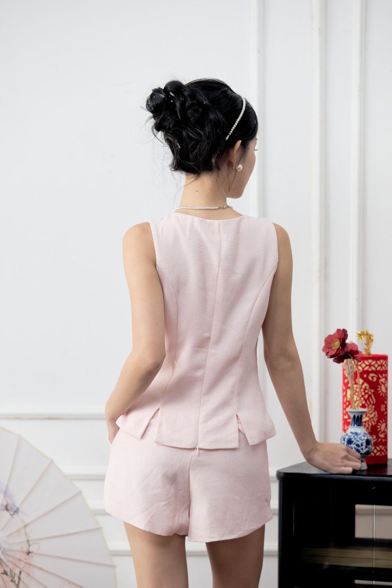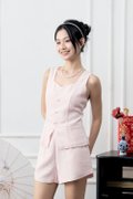 The Romaine Tweed Shorts combine structure, elegance, and comfort—designed to pair perfectly with the matching vest or to stand alone as a chic statement bottom. Crafted from a non-stretch polyester blend tweed, these shorts offer a clean, refined look while maintaining a flattering, slightly fitted silhouette. The curved hem is thoughtfully shaped to elongate and contour the legs, creating a slimming visual effect. Functional side pockets add practicality, while a decorative pocket at the back enhances the tailored finish. Completed with an invisible back zip for a seamless appearance and fully lined with soft knitted fabric for comfort throughout the day.