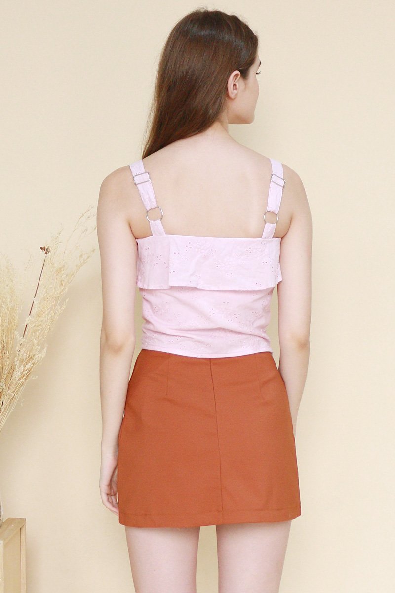 Candela Ruffle Trim Eyelet Top Blush