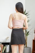 Model H is HEIGHT 174CM, PTP 15.5”, WAIST 12”, HIPS 17”, wearing size S.